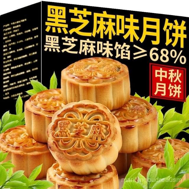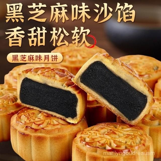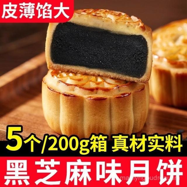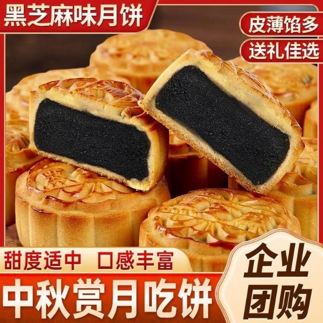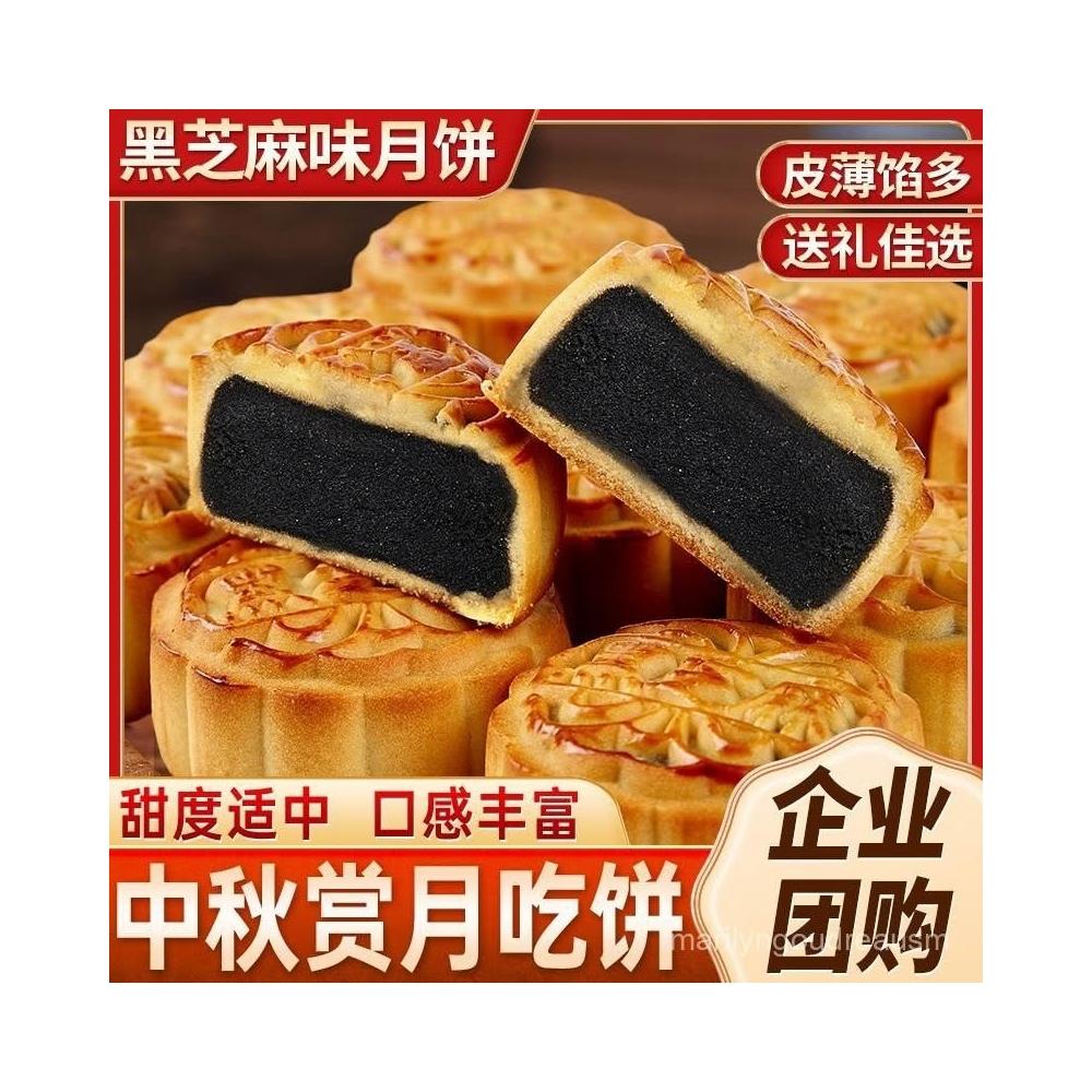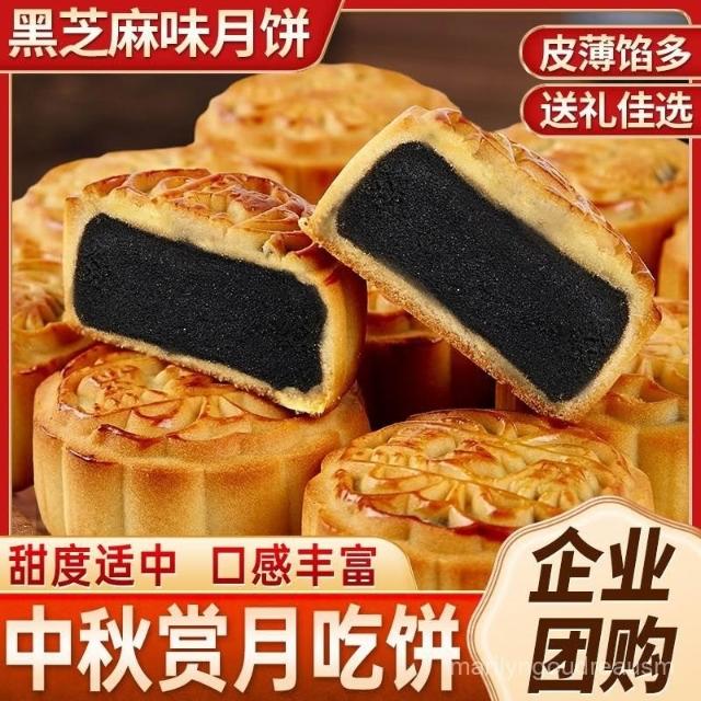 小圓滿黑芝麻月餅廣式月餅老式傳統黑芝麻夾心月餅中秋節送禮整箱批髮