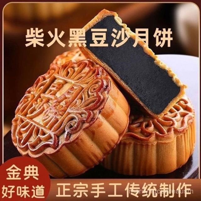 小圓滿柴火黑豆沙月餅廣式手工製作傳統老式特産陳皮豆沙糕點心筒裝零食
