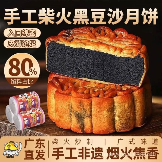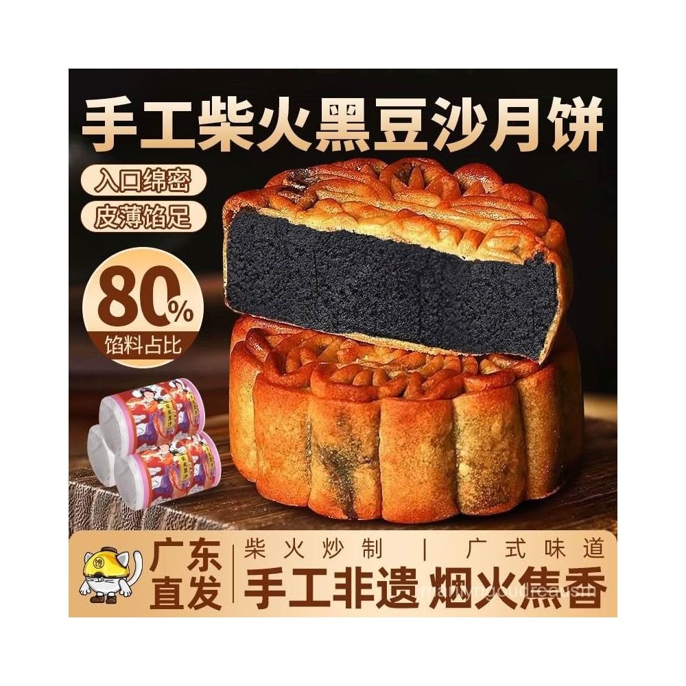 小圓滿正宗柴火黑豆沙月餅陳皮口味非遺手工皮薄個大傳統糕點中秋送禮品