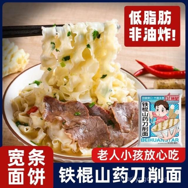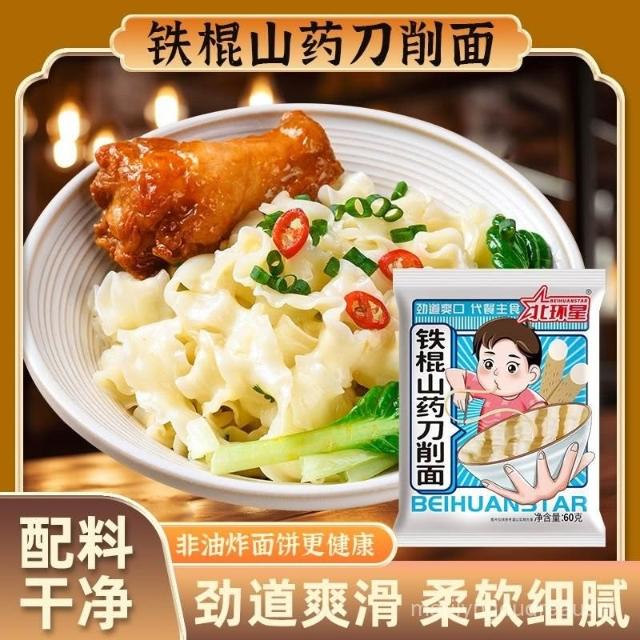 小圓滿正宗鐵棍山藥刀削麵寬麵條低脂非油炸勁道早餐麵條