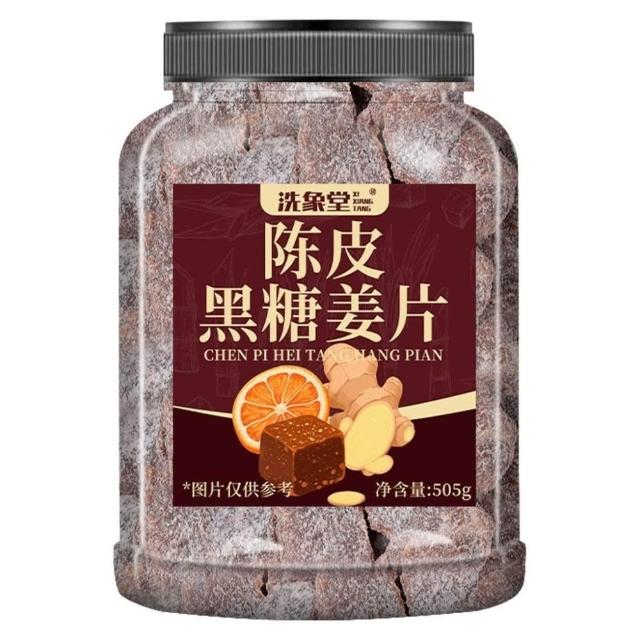 小圓滿正宗陳皮黑紅糖薑片罐裝125g涼果生薑卽食泡水零食薑糖