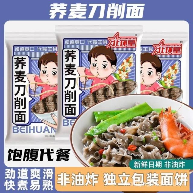 小圓滿低脂蕎麥刀削麵非油炸勁道粗糧早餐麵主食代餐麵條獨立包裝