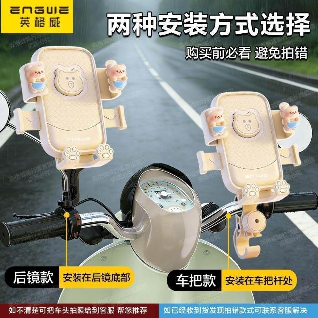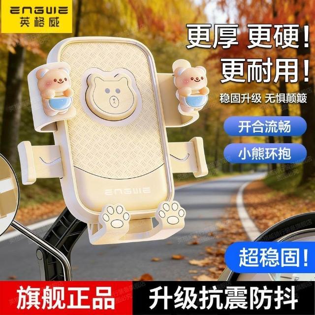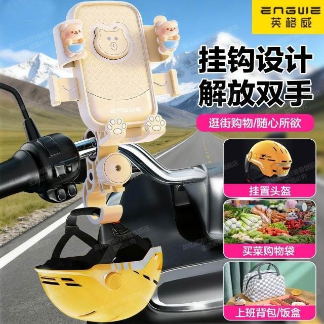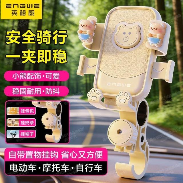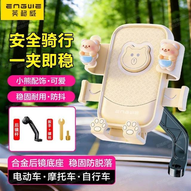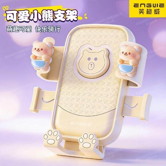 榮榮甄選英格威黃色電動車手機導航支架可愛小熊女生騎行通用帶掛鉤易安裝