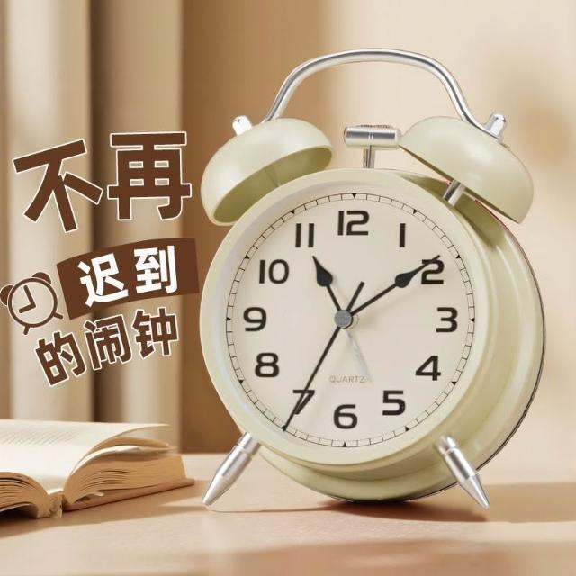 聰明甄選鬧鐘強力叫醒學生專用起牀神器新款兒童靜音復古金屬機械鬧鈴檯鐘