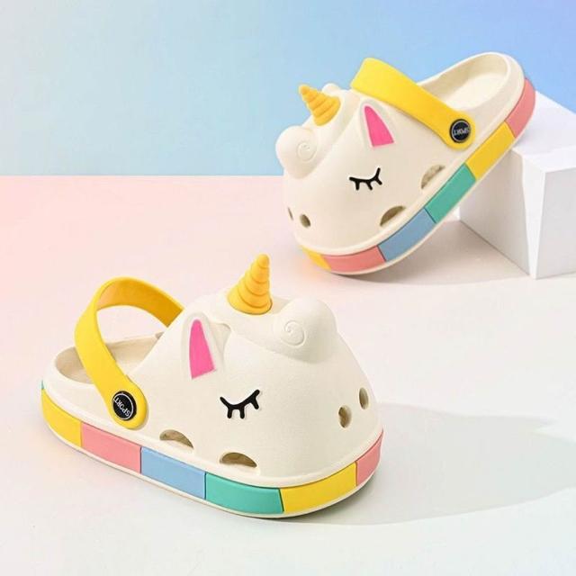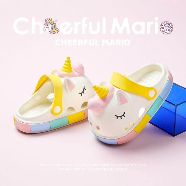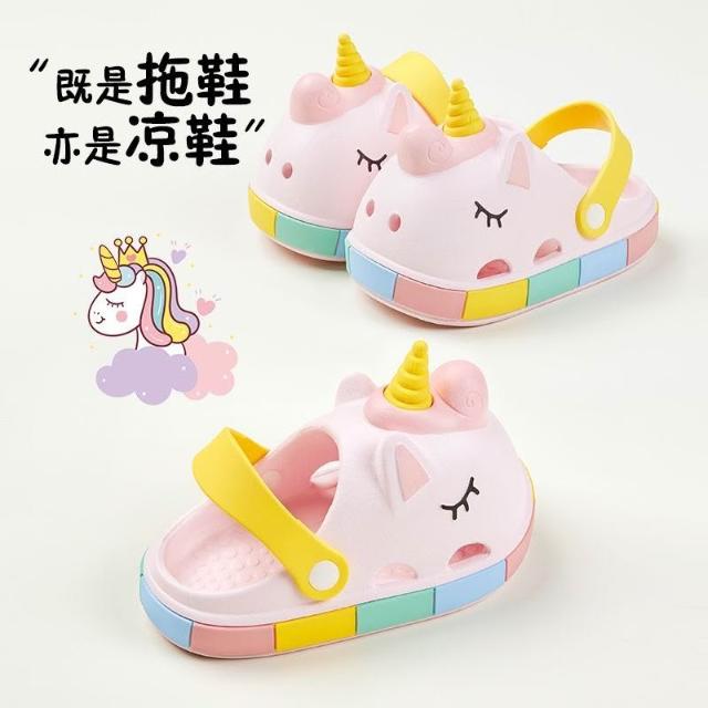 聰明甄選獨角獸女童夏季兒童洞洞鞋高顏值公主風女孩夏天室外兩穿涼拖鞋