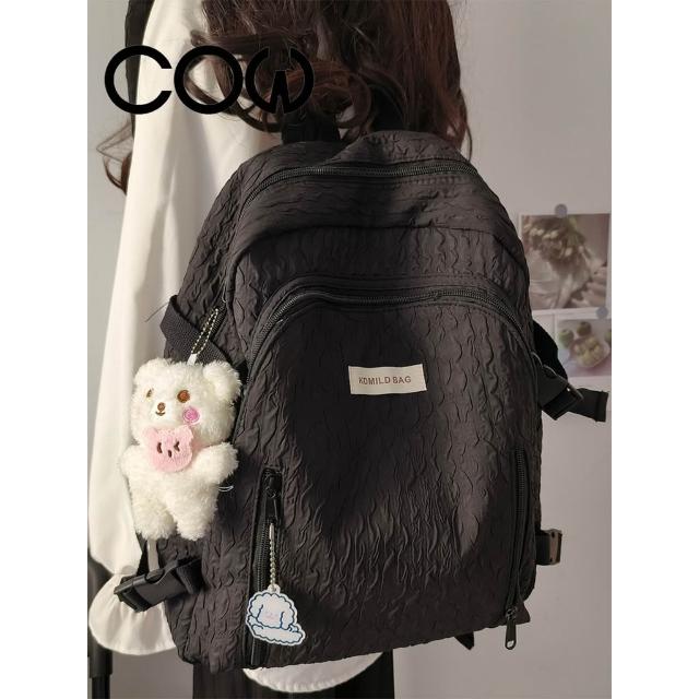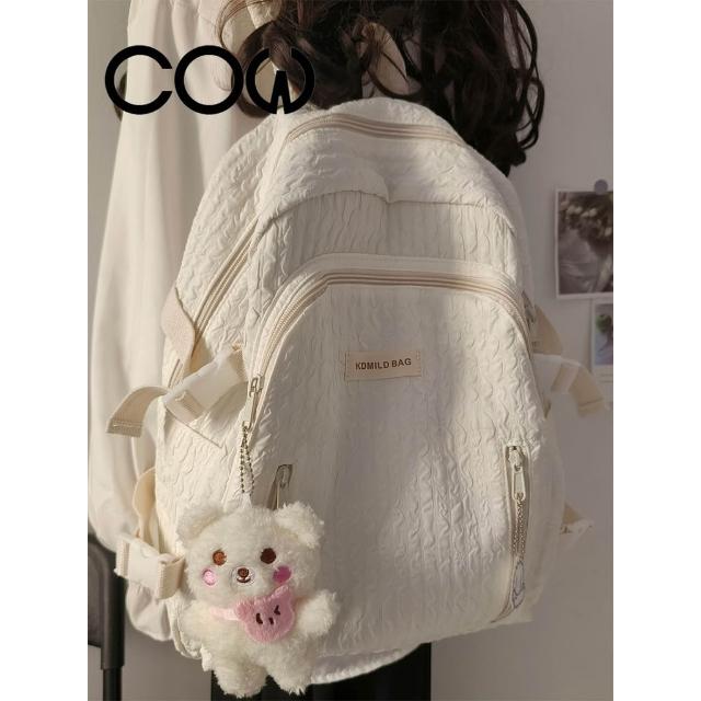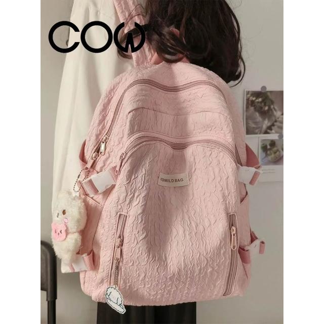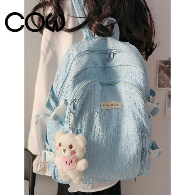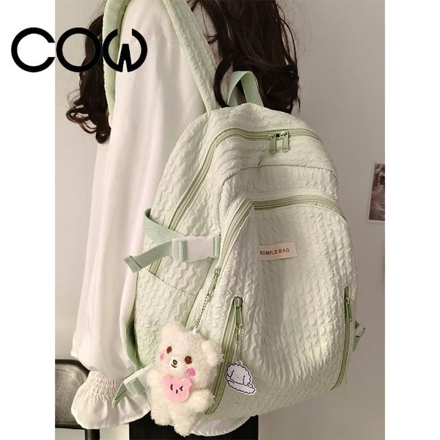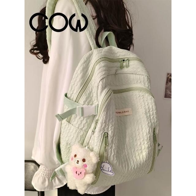 聰明甄選【COW】書包大學生小衆設計泡泡格 日系甜美少女雙肩包休閒包學生揹包