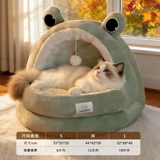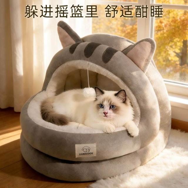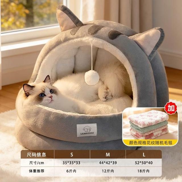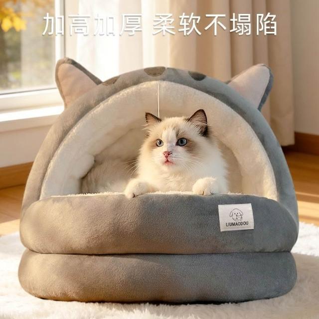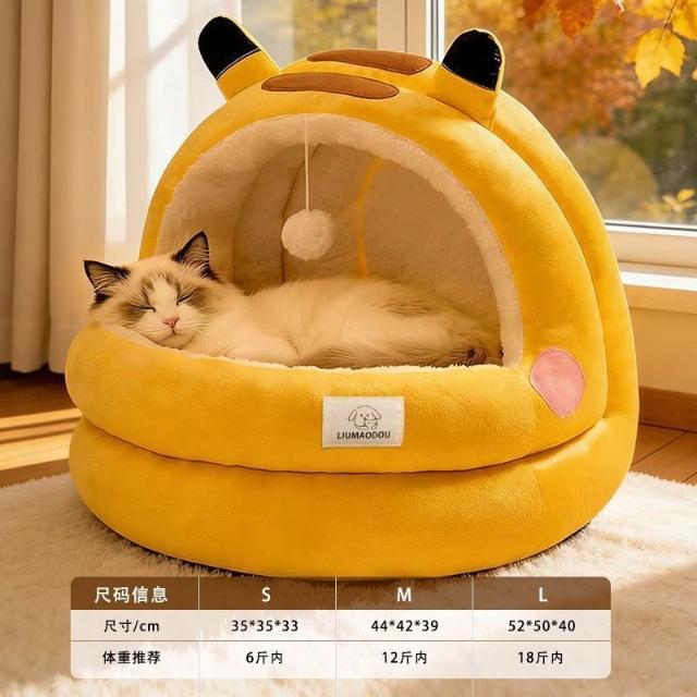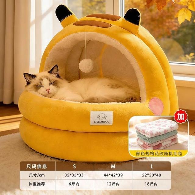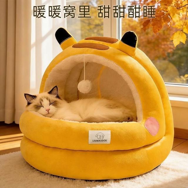 聰明甄選貓窩狗窩冬季保暖皮卡丘半封閉加厚兩件套蒙古包安全感冬天寵物牀