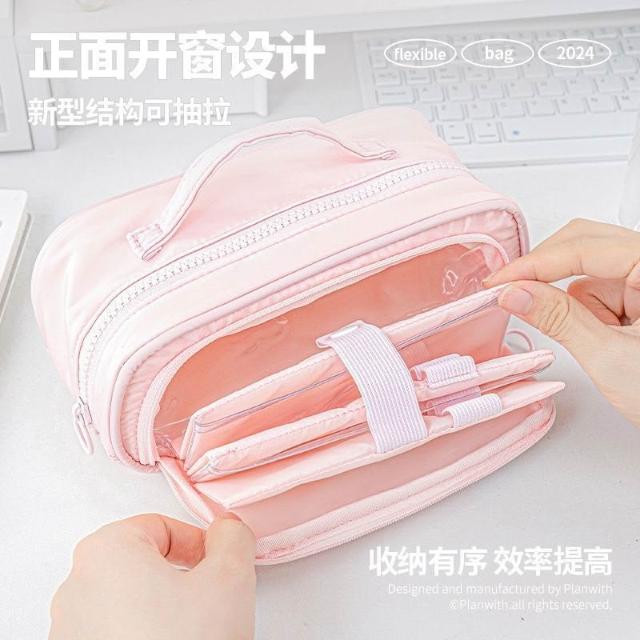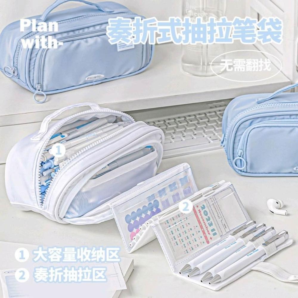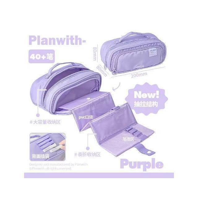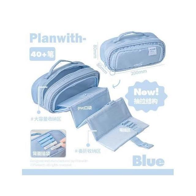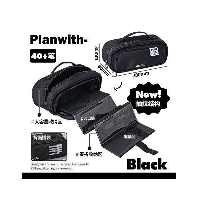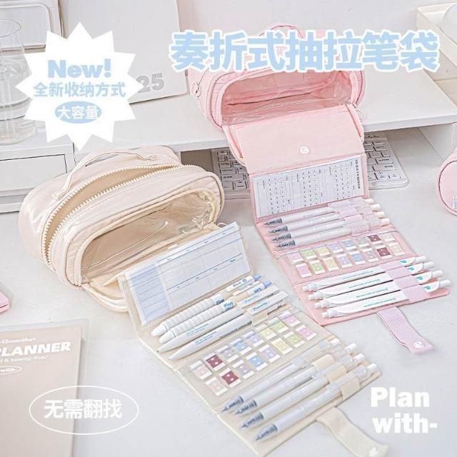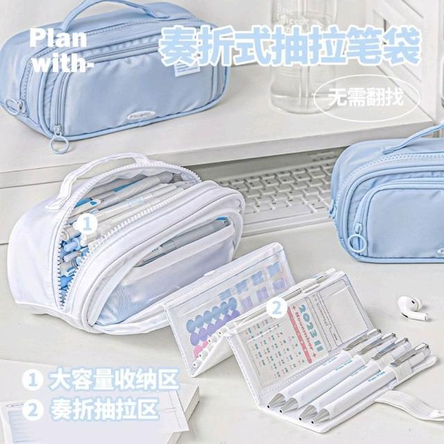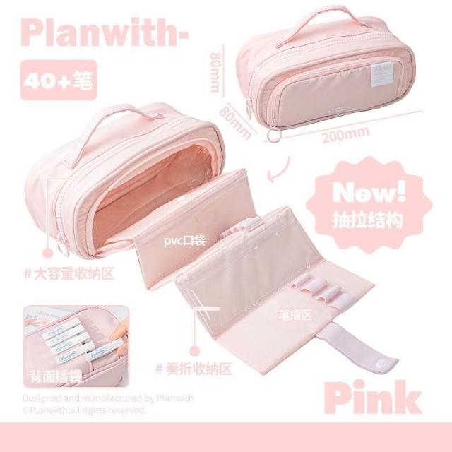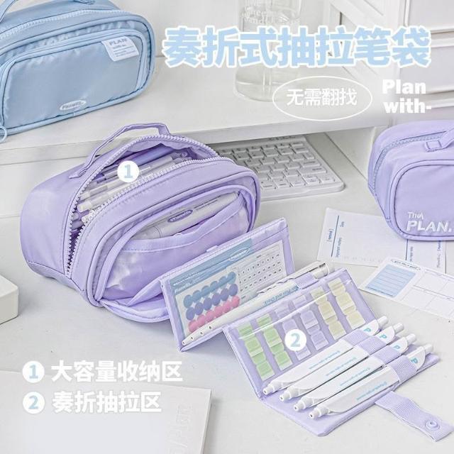 樂樂甄選Planwith友計劃純色帆布伸縮收納筆袋大容量抽拉文具袋學生鉛筆盒