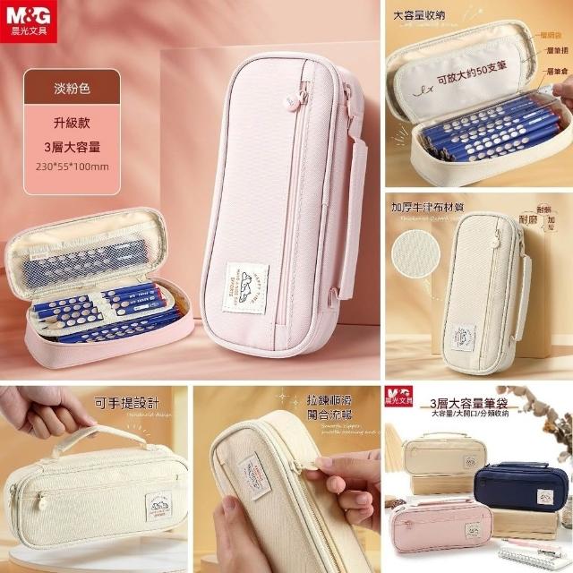 樂樂甄選[晨光]簡約純色多層筆袋筆盒牛津佈防水鉛筆袋鉛筆盒女生筆袋大容量
