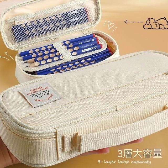 樂樂甄選[晨光]簡約純色多層筆袋筆盒牛津佈防水鉛筆袋鉛筆盒女生筆袋大容量