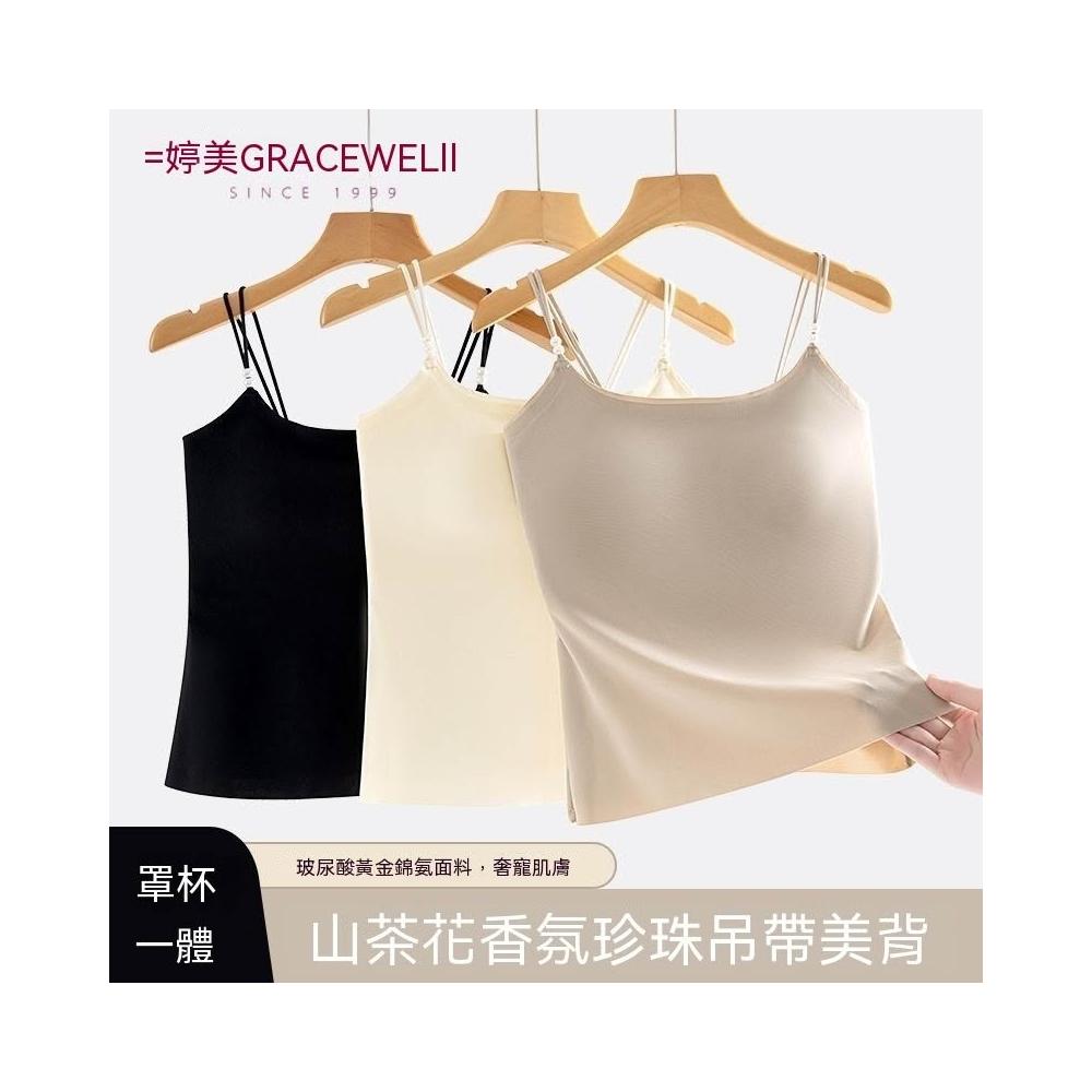 樂樂甄選[婷美]冰絲夏季背心女帶胸墊一體新款香氛涼感美背打底珍珠吊帶抗菌