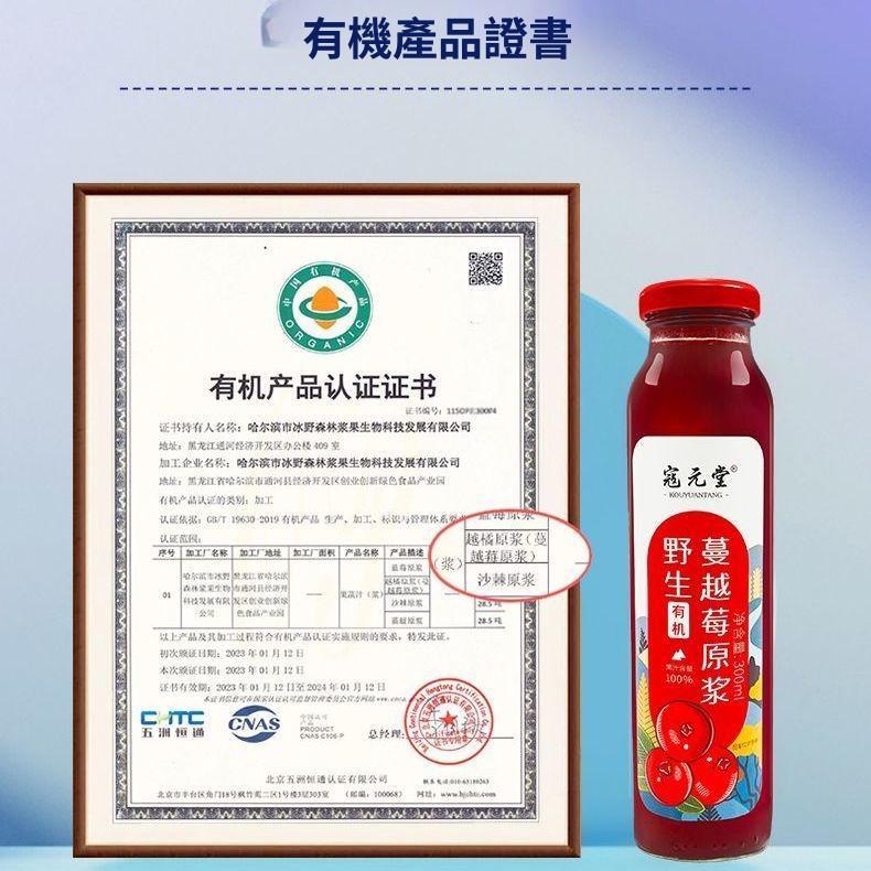 內蒙野生沙棘原漿 蔓越莓原漿藍莓原漿沙棘原汁300ml