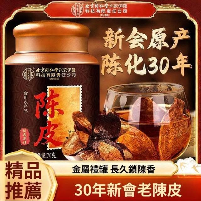 北京同仁堂陳皮70g特級新會桔橘皮老陳皮幹泡茶泡水禮盒