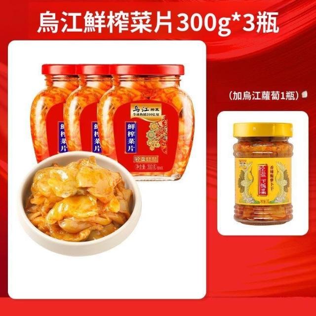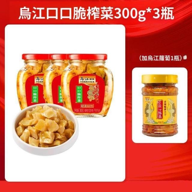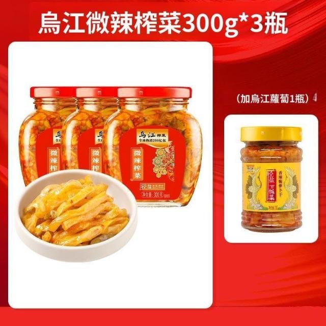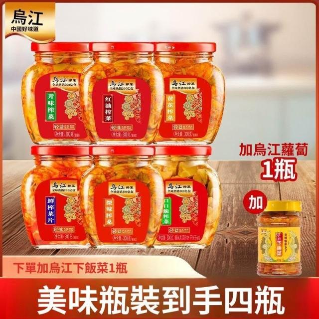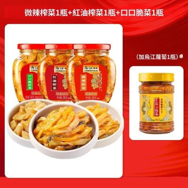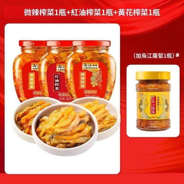 烏江榨菜300g瓶裝紅油微辣鮮榨等多口味榨菜加230g蘿蔔下飯菜鹹菜