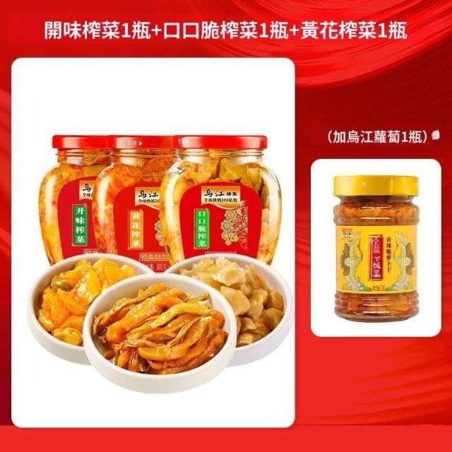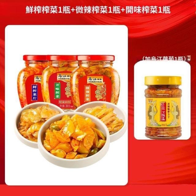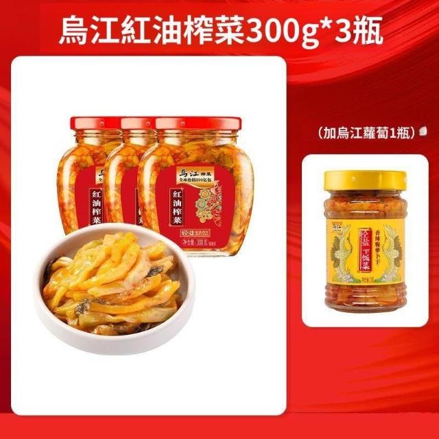 烏江榨菜300g瓶裝紅油微辣鮮榨等多口味榨菜加230g蘿蔔下飯菜鹹菜