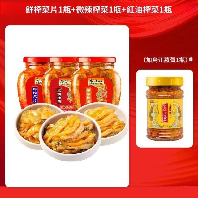 烏江榨菜300g瓶裝紅油微辣鮮榨等多口味榨菜加230g蘿蔔下飯菜鹹菜