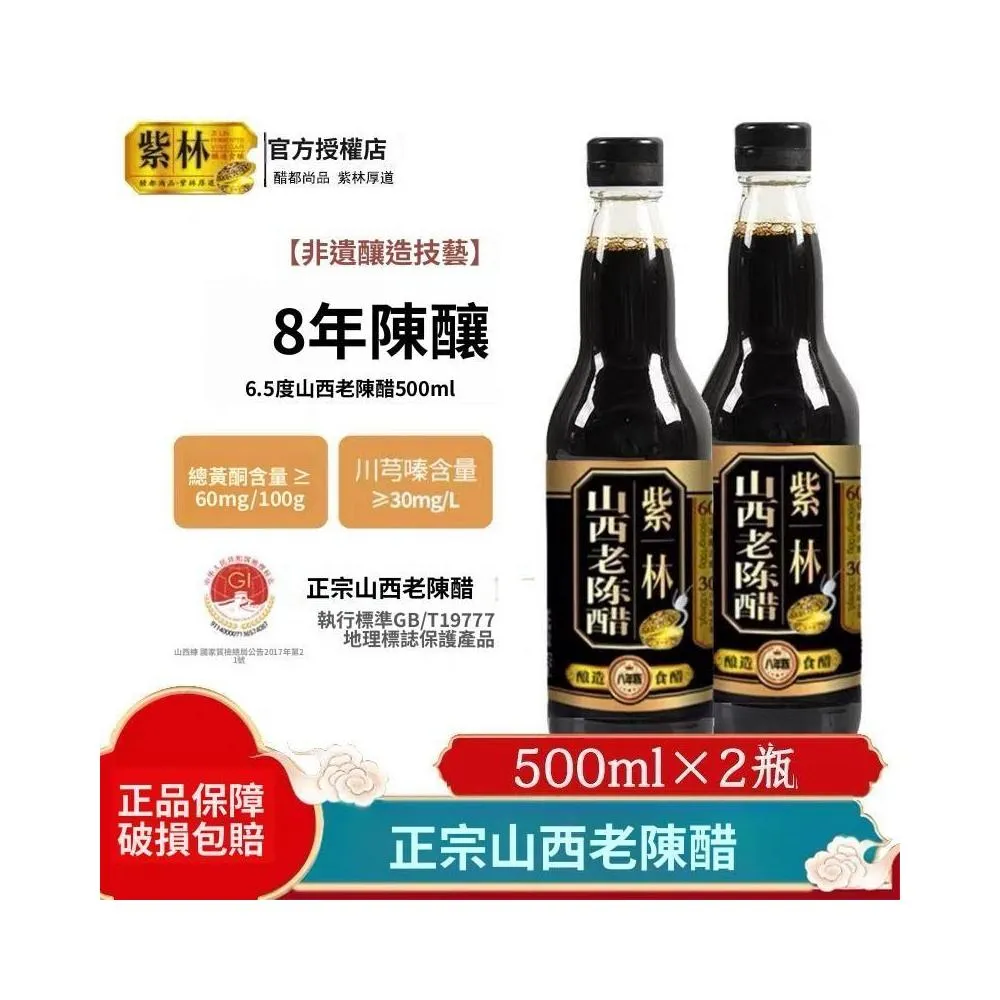 紫林山西老陳醋8年陳6.5度酸純糧釀造山西特產家用小瓶正宗涼拌醋