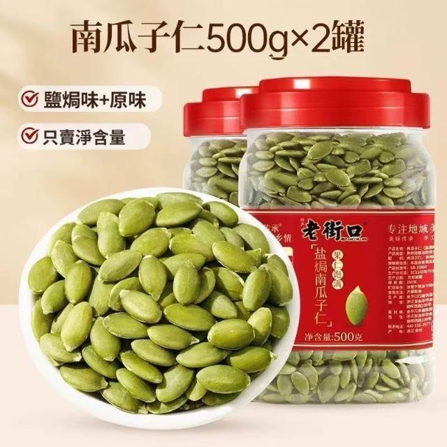 老街口 鹽焗味南瓜子仁500g*2罐脫殼熟南瓜籽仁炒貨烘培零食新貨
