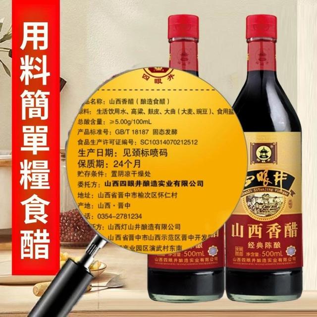 四眼井5度零添加山西香醋500ml玻璃瓶高粱釀造涼拌餃子海鮮家用醋