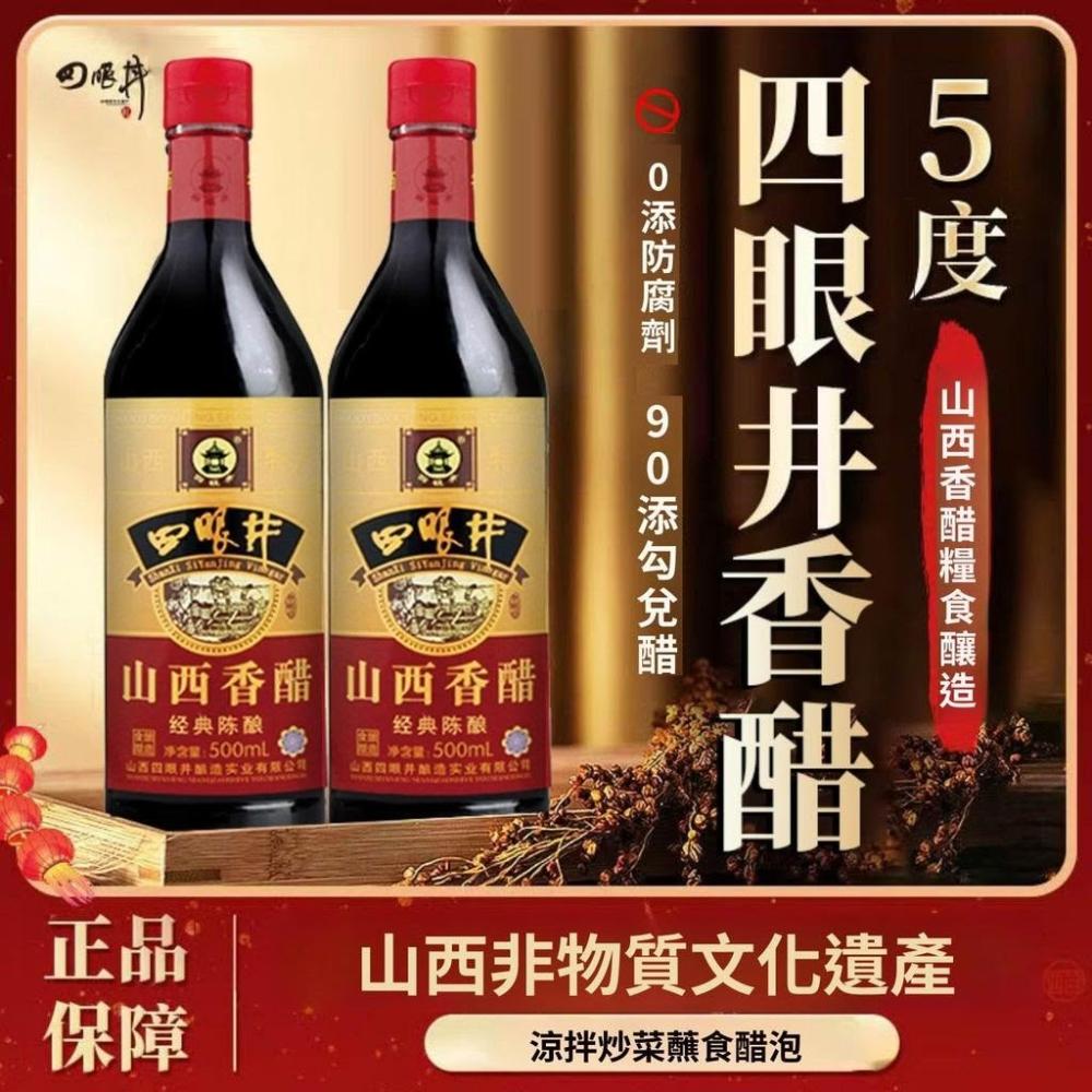 四眼井5度零添加山西香醋500ml玻璃瓶高粱釀造涼拌餃子海鮮家用醋
