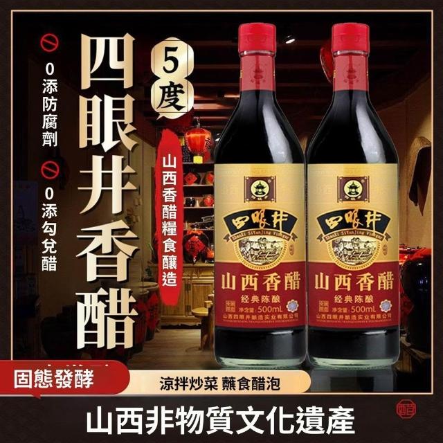 四眼井5度零添加山西香醋500ml玻璃瓶高粱釀造涼拌餃子海鮮家用醋