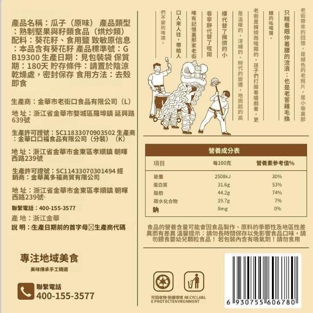 老街口原味瓜子500g新瓜子葵花籽堅果炒貨休閒零食追劇瓜子七分熟
