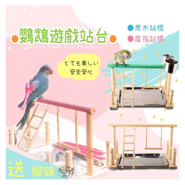 鸚鵡站台【24H台灣出貨+鐵盤加厚+送腳鏈】中小型鸚鵡 站台 鞦韆 爬梯 站架 鸚鵡玩具 玄鳳 和尚 牡丹 站架 站棍