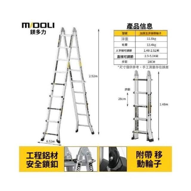 熱賣🔥鎂多力伸縮梯子特厚家用多功能兩用樓梯加厚鋁合金折迭小巨人字梯 多功能伸縮梯 家用梯 折迭梯 人字梯 工作梯