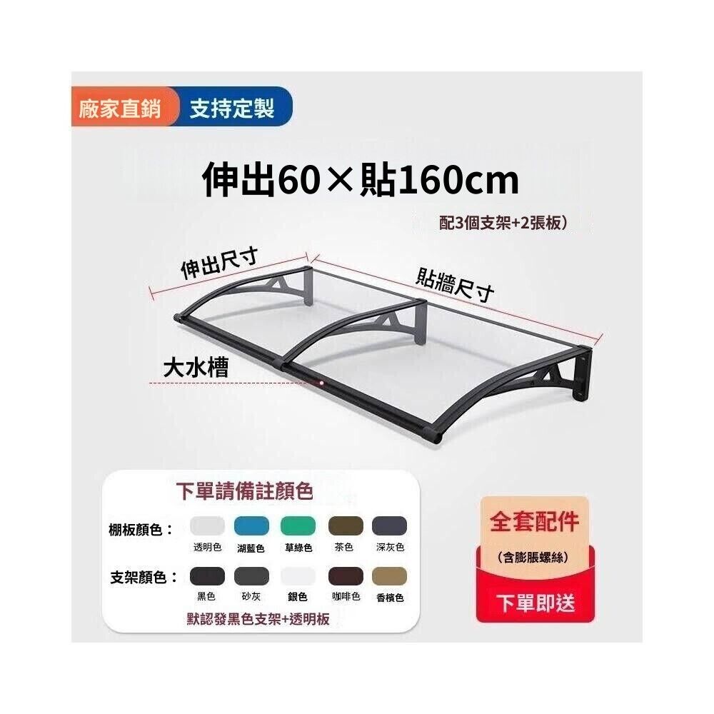 可開發票💓鋁合金雨棚 遮雨棚 窗戶陽台遮雨棚 防雨遮陽 擋雨板 屋檐 雨遮 晴雨棚 擋板 陽光板 遮陽棚