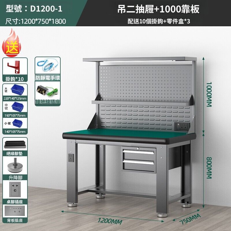 熱銷💕阿特姆重型鉗工不鏽鋼防靜電工作檯工具維修桌車間操作檢實驗室桌電工桌 維修操作台 汽修廠櫸樹台面 工作檯面 操作台