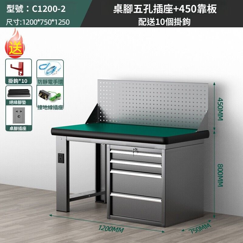 熱銷💕阿特姆重型鉗工不鏽鋼防靜電工作檯工具維修桌車間操作檢實驗室桌電工桌 維修操作台 汽修廠櫸樹台面 工作檯面 操作台