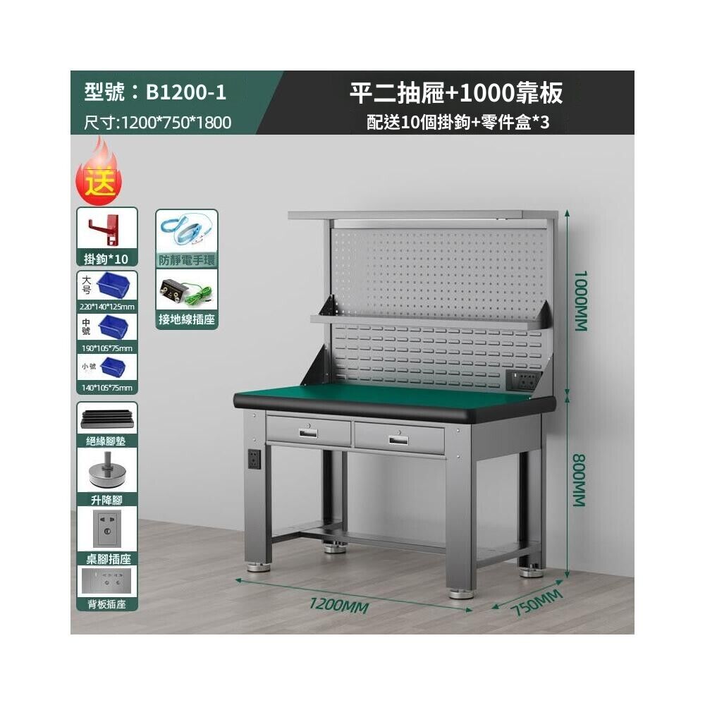 熱銷💕阿特姆重型鉗工不鏽鋼防靜電工作檯工具維修桌車間操作檢實驗室桌電工桌 維修操作台 汽修廠櫸樹台面 工作檯面 操作台