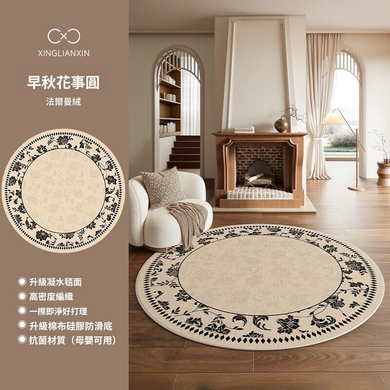 客廳地毯【隔涼加厚8mm+防水抗菌+0甲醛】臥室地埝 法式地埝 衣帽間地埝 圓形地毯 床邊毯 化妝間地埝 圈絨地埝