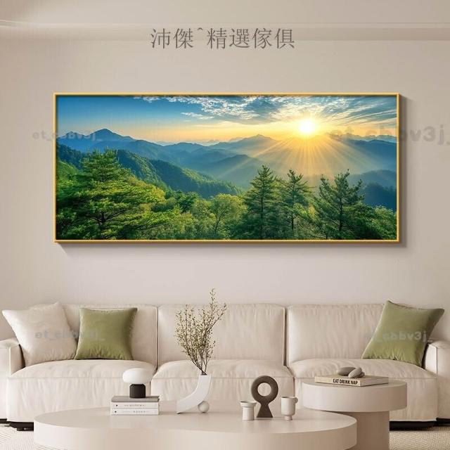 熱銷💟成品畫 客廳掛畫 背有靠山 客廳裝飾畫 沙發背景墻掛畫 風景畫 晶瓷畫 客廳裝飾畫 風水畫 山水畫