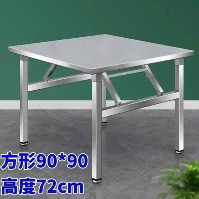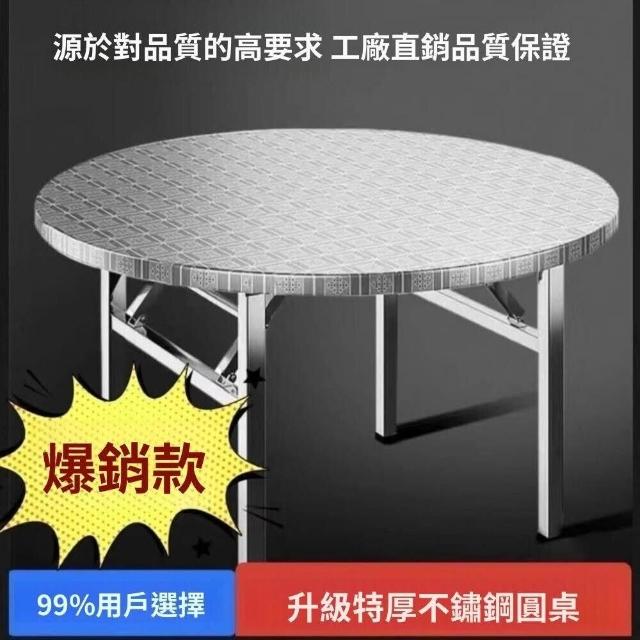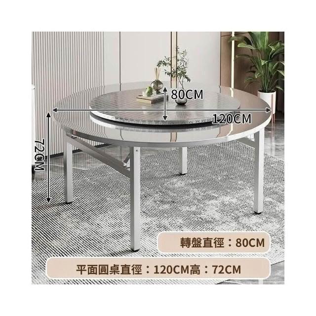 新品💕不銹鋼折疊桌 圓桌 餐桌 不銹鋼折疊圓桌子 飯館燒烤酒席帶轉盤組閤桌 擺攤桌 燒烤桌 特厚擺攤小喫店長方桌