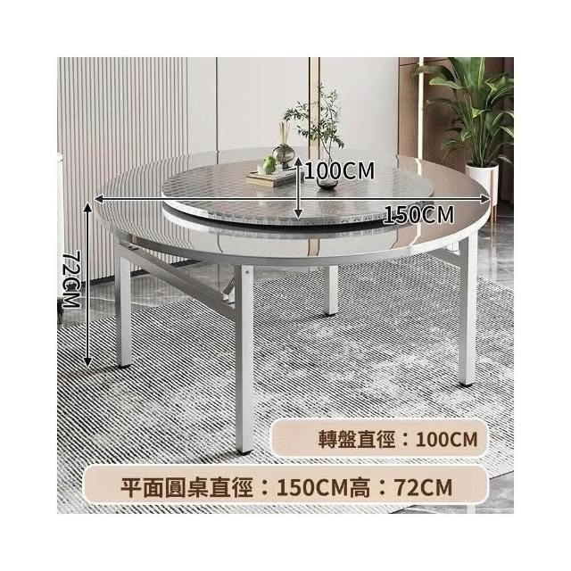 新品💕不銹鋼折疊桌 圓桌 餐桌 不銹鋼折疊圓桌子 飯館燒烤酒席帶轉盤組閤桌 擺攤桌 燒烤桌 特厚擺攤小喫店長方桌