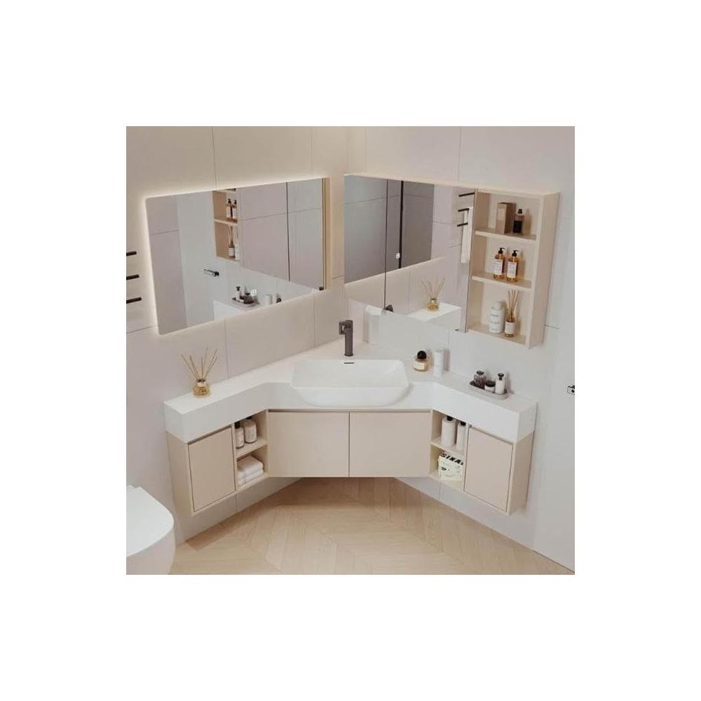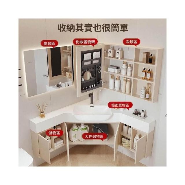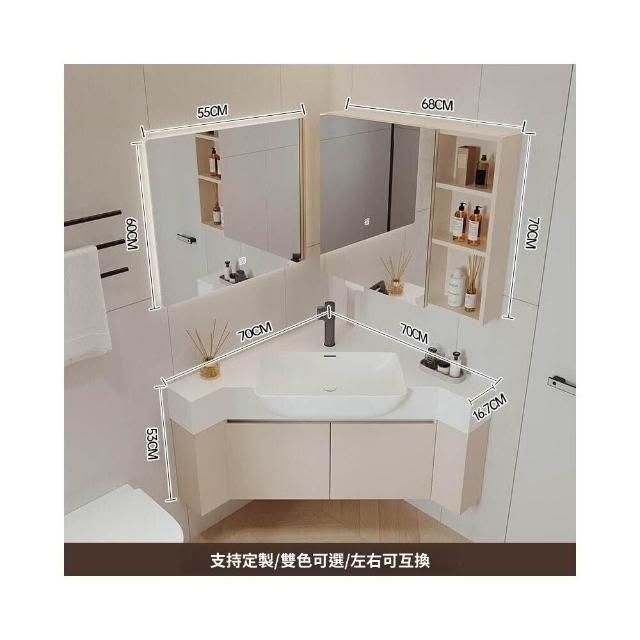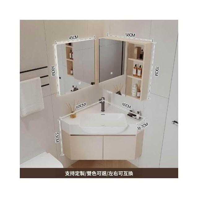 熱賣🔥奶油風轉角浴室櫃 防水防潮耐腐蝕 乾濕分離 大肚盆浴櫃 浴室鏡櫃 浴櫃組 浴櫃王 智能鏡櫃