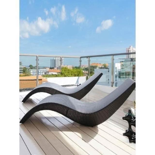 戶外泳池躺椅休閒沙灘椅海邊別墅藤編防水躺床露天陽台庭院藤長椅 庭院游泳池躺椅 露天花園 陽台休閒躺椅 沙灘藤編躺椅