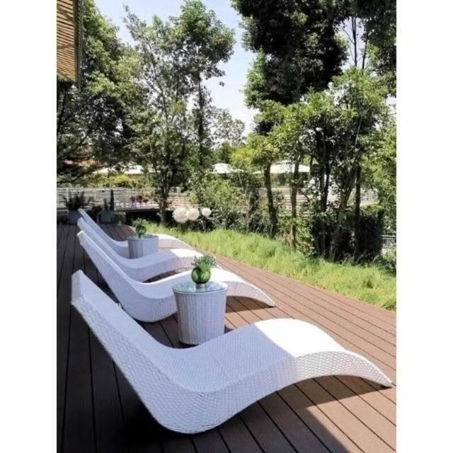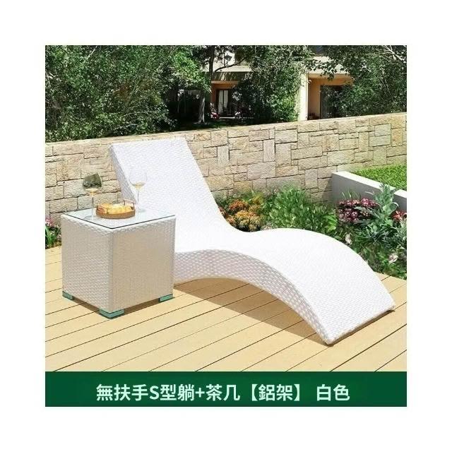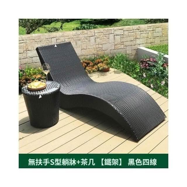 戶外泳池躺椅休閒沙灘椅海邊別墅藤編防水躺床露天陽台庭院藤長椅 庭院游泳池躺椅 露天花園 陽台休閒躺椅 沙灘藤編躺椅