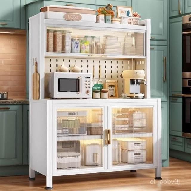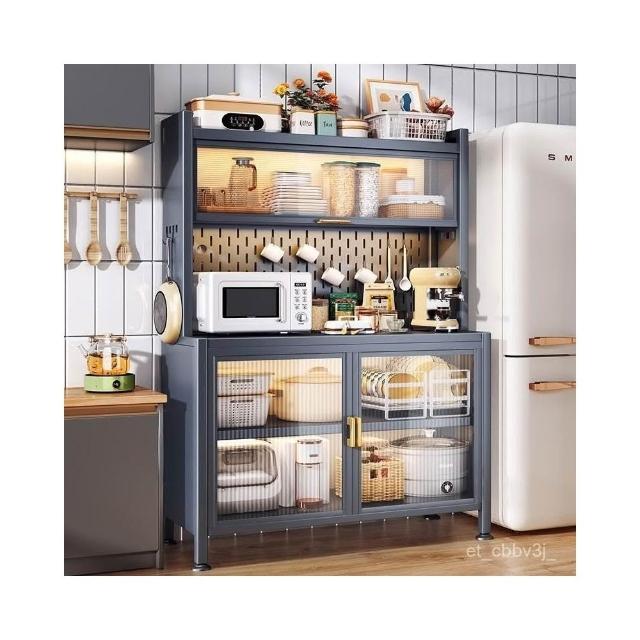 熱賣🔥廚房置物架餐邊儲物櫃落地多層烤箱微波爐鍋電器多功能鐵藝餐邊櫃 儲物櫃 置物櫃 收納櫃 餐邊櫃 櫥櫃