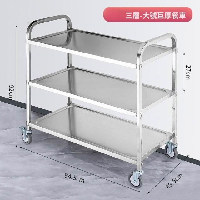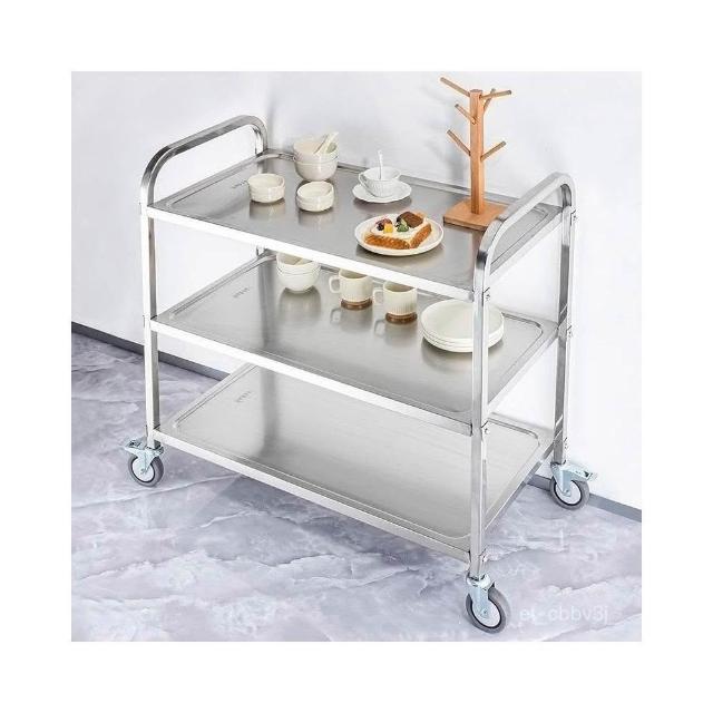 熱賣🔥加厚不銹鋼餐車 三層手推車 餐廳送餐車 收碗車 飯店小推車 雙層收餐小推車 真材實料 不鏽鋼收納車