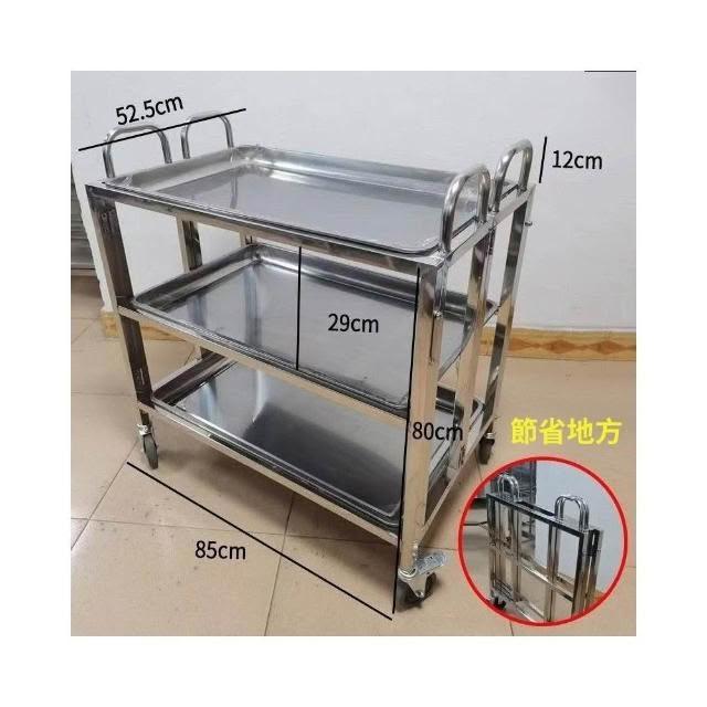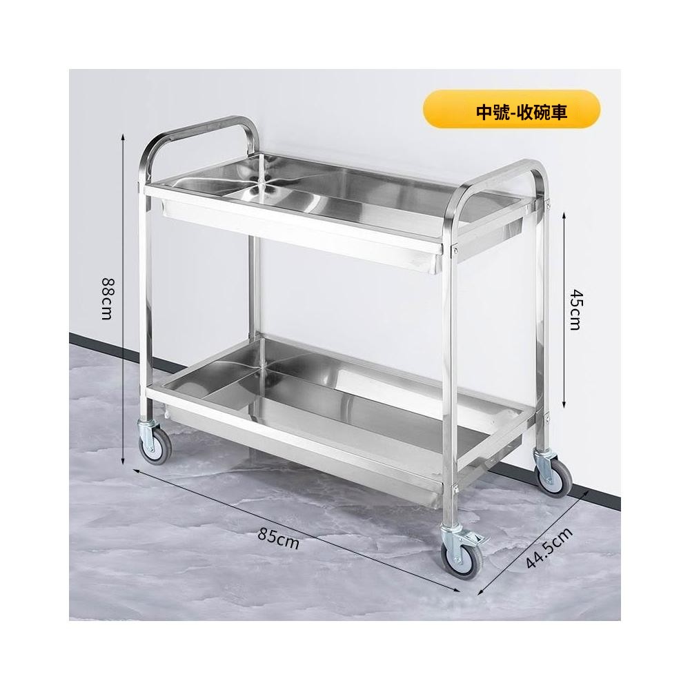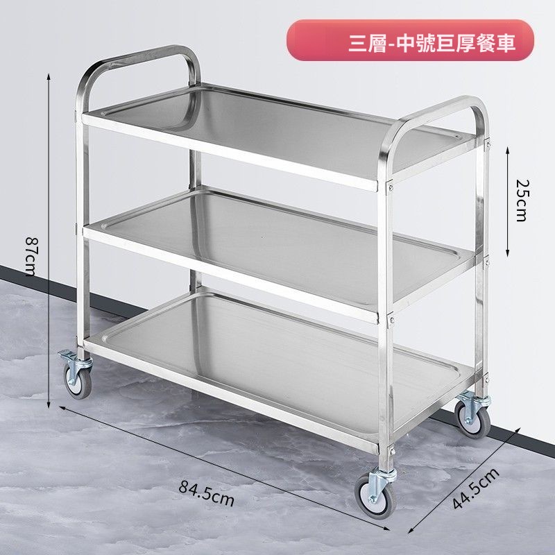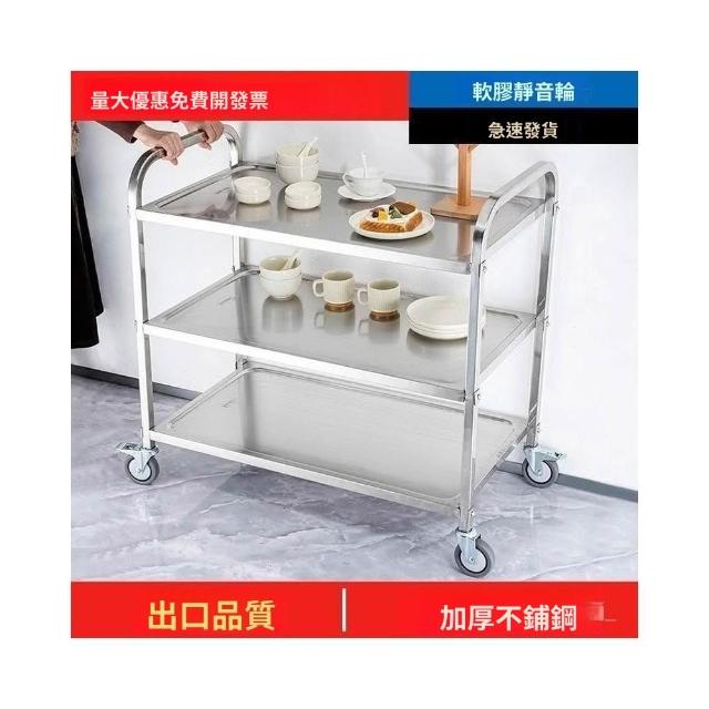 熱賣🔥加厚不銹鋼餐車 三層手推車 餐廳送餐車 收碗車 飯店小推車 雙層收餐小推車 真材實料 不鏽鋼收納車
