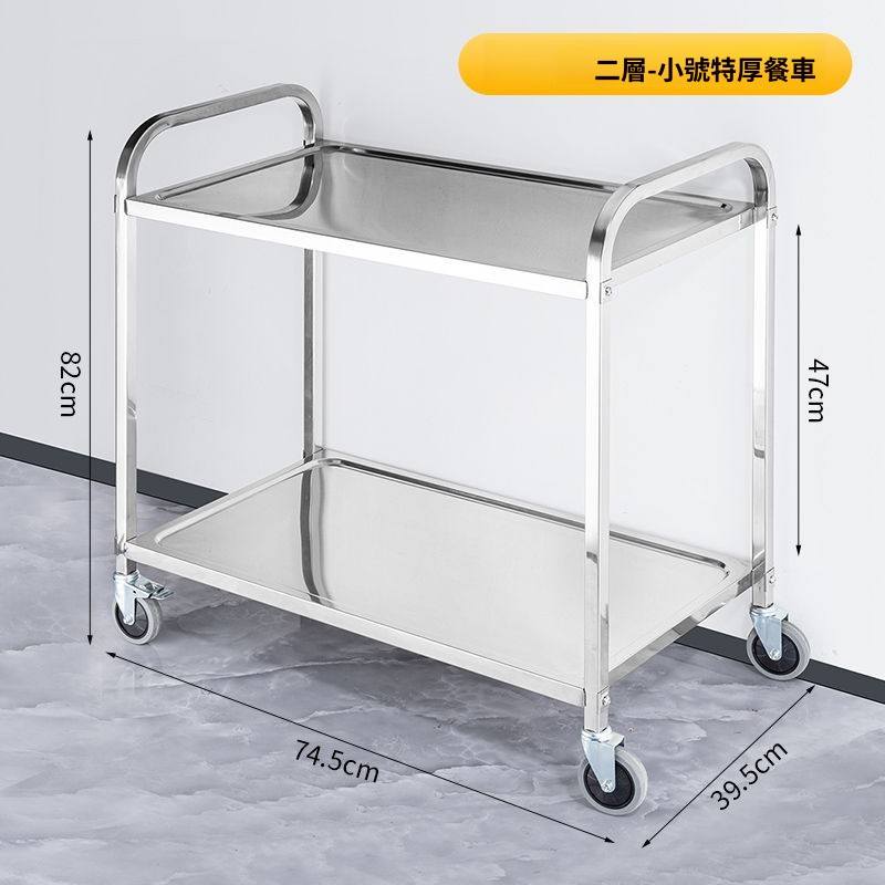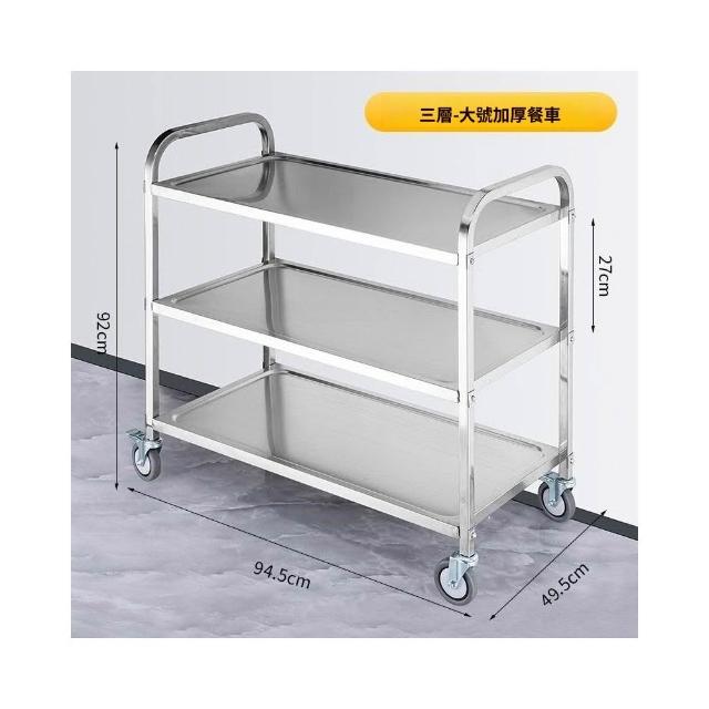 熱賣🔥加厚不銹鋼餐車 三層手推車 餐廳送餐車 收碗車 飯店小推車 雙層收餐小推車 真材實料 不鏽鋼收納車