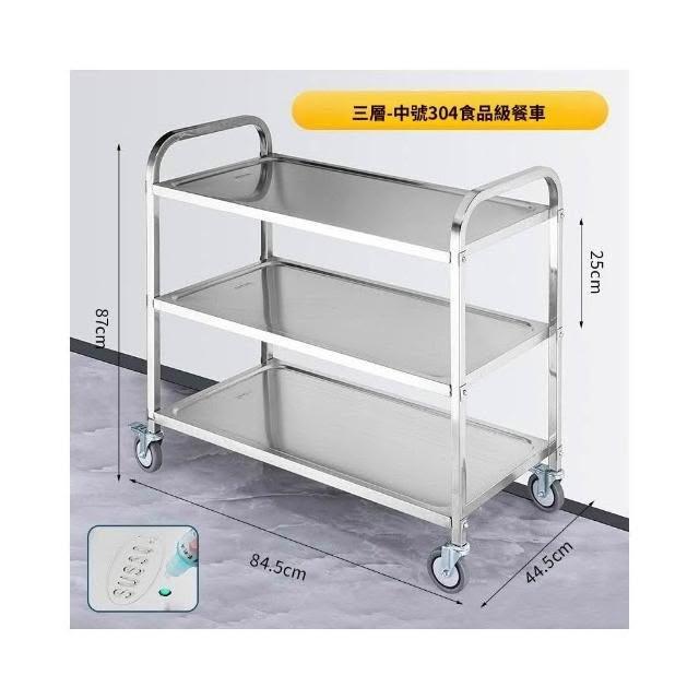 熱賣🔥加厚不銹鋼餐車 三層手推車 餐廳送餐車 收碗車 飯店小推車 雙層收餐小推車 真材實料 不鏽鋼收納車