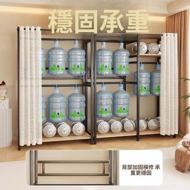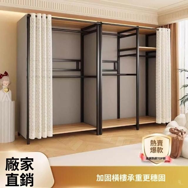 熱賣🔥帶紗簾 多功能收納防塵 開放式衣櫃臥室家用簡易組裝金屬鋼架收納衣櫃耐用出租房金屬衣櫃 置物架