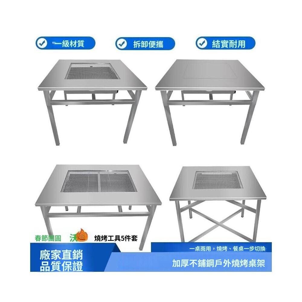 熱賣🔥不鏽鋼燒烤桌 加厚折疊燒烤架 戶外自助燒烤爐 野營木炭烤肉桌 戶外茶桌 家用餐桌 便攜燒烤桌 可拆卸桌