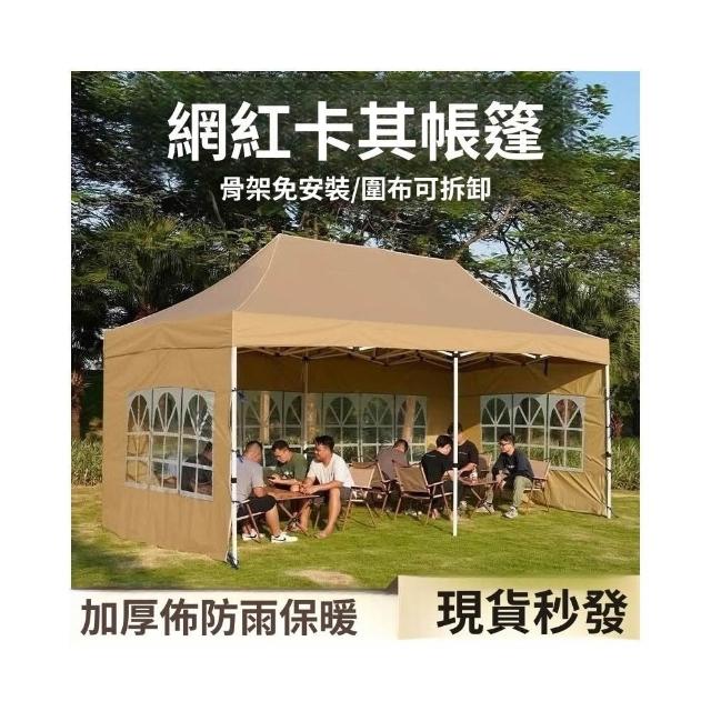 熱銷💟戶外擺攤用四腳傘帳篷 室外卡其色大傘車棚 雨棚 四角遮陽棚 露營帳篷 戶外帳篷 野餐帳篷 便捷戶外野營帳篷