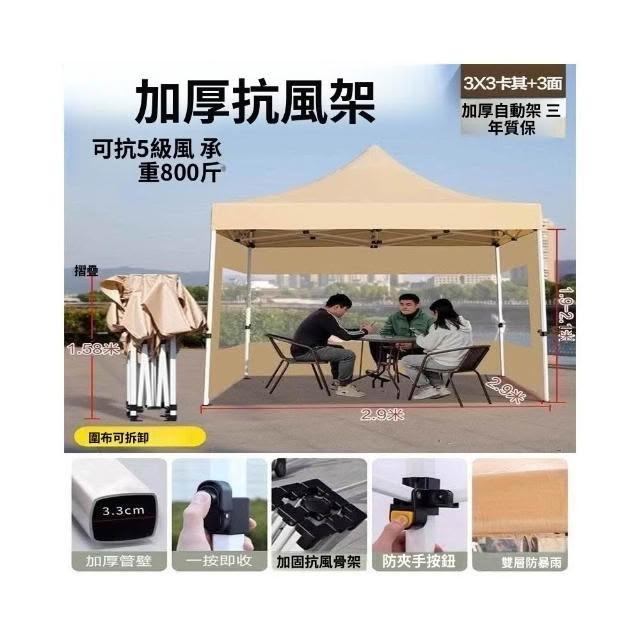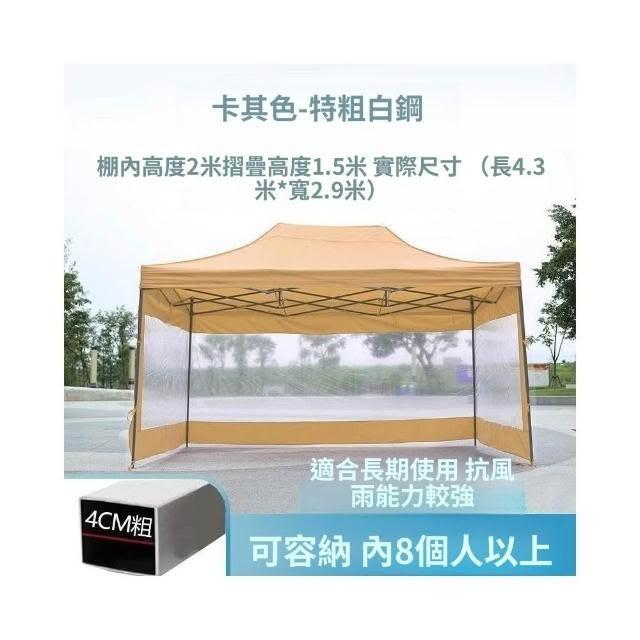 熱銷💟戶外擺攤用四腳傘帳篷 室外卡其色大傘車棚 雨棚 四角遮陽棚 露營帳篷 戶外帳篷 野餐帳篷 便捷戶外野營帳篷