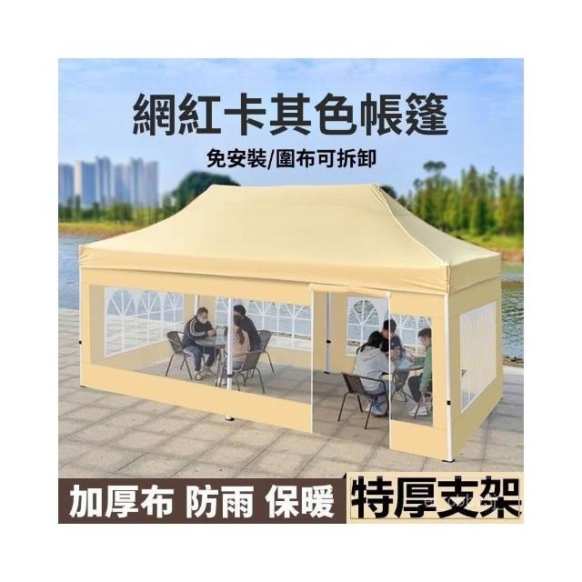 熱銷💟戶外擺攤用四腳傘帳篷 室外卡其色大傘車棚 雨棚 四角遮陽棚 露營帳篷 戶外帳篷 野餐帳篷 便捷戶外野營帳篷