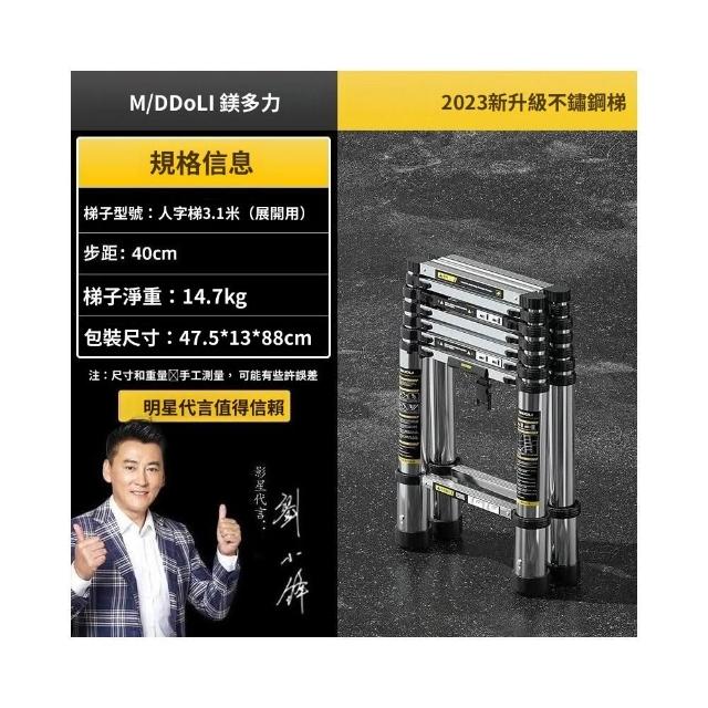 下殺💗不鏽鋼一字伸縮梯 多功能家用梯子 不鏽鋼工程梯 伸縮鋁梯 折疊梯 直梯 掛梯 拉梯 人字梯 一字梯